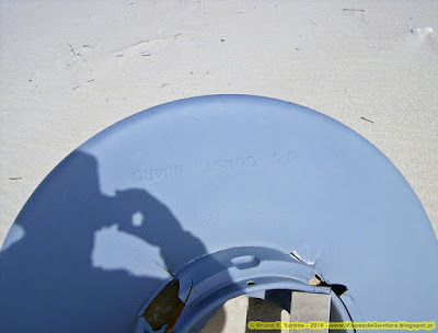 Today i present a few curious photos, about an odd big object, made in plastic (perhaps a part of a buoy), who once belonged to the United States Coast Guard. This object was deposited, by the sea and ocean currents, in a desert beach of Gândara, in Portugal.