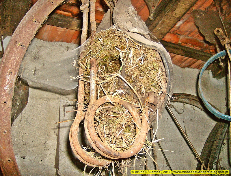 Today i present a few photos of a bird nest (i don't know the species of the bird or couple of birds who made it), built in an old bicycle saddle, using straw, grass and mud as raw materials. The photos were taken in May of 2016, in the Town of Tocha.
